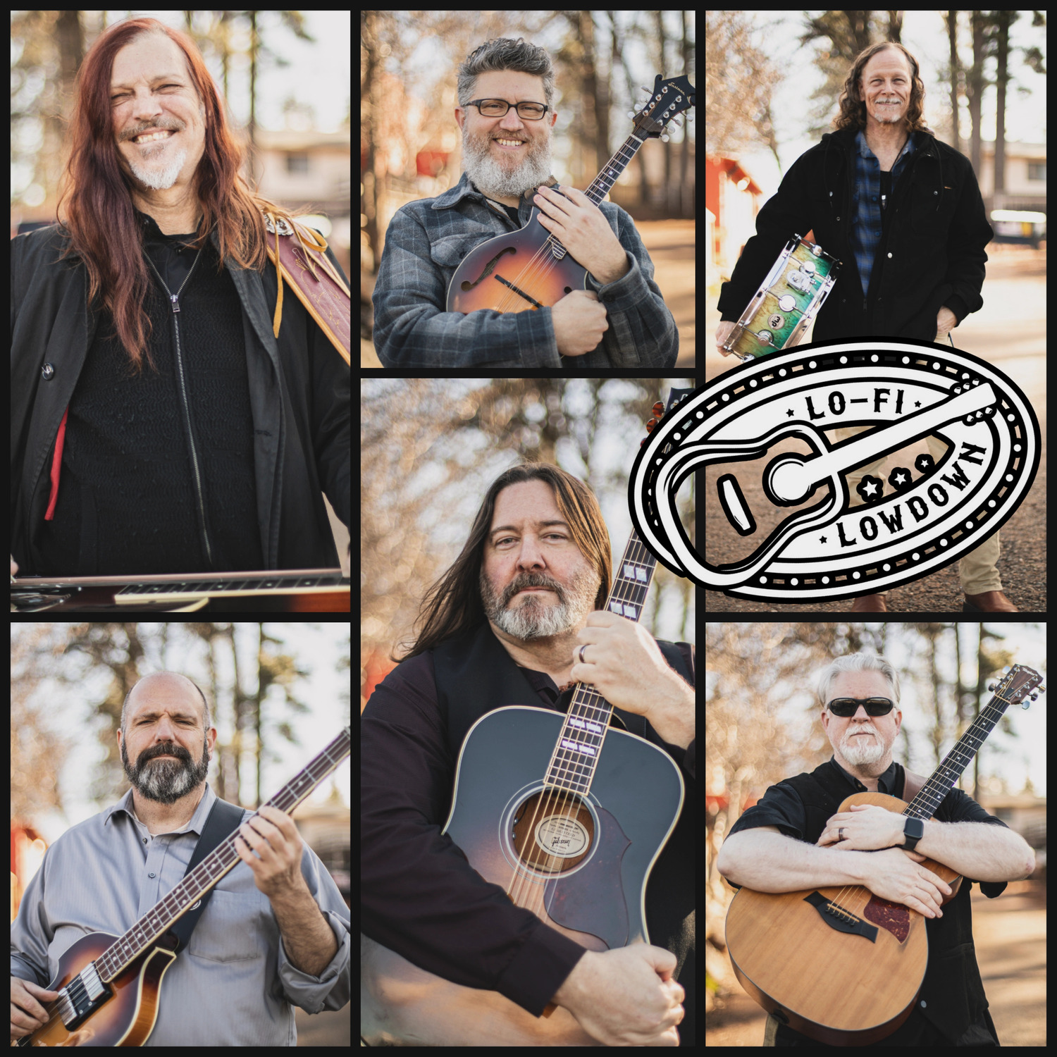 LoFi Lowdown is a Sacramento-based rock and jam-grass fusion band founded in 2021 by Jim Berry, blending bluegrass roots with a high-energy rock edge inspired by artists ranging from Billy Strings to AC/DC. With over 200 years of combined musical experience, the six-piece delivers a raucous, good-humored mix of originals and select covers in a style uniquely their own. A rock-solid rhythm section supports a dynamic lineup of dobro, guitar, mandolin, banjo, and growling vocals, creating a rich and driving sound. Their standout five-part vocal harmonies add a distinctive layer that sets them apart from traditional jam and roots bands. LoFi Lowdown has played extensively throughout Sacramento County and beyond and is set to release their debut EP in 2024.
